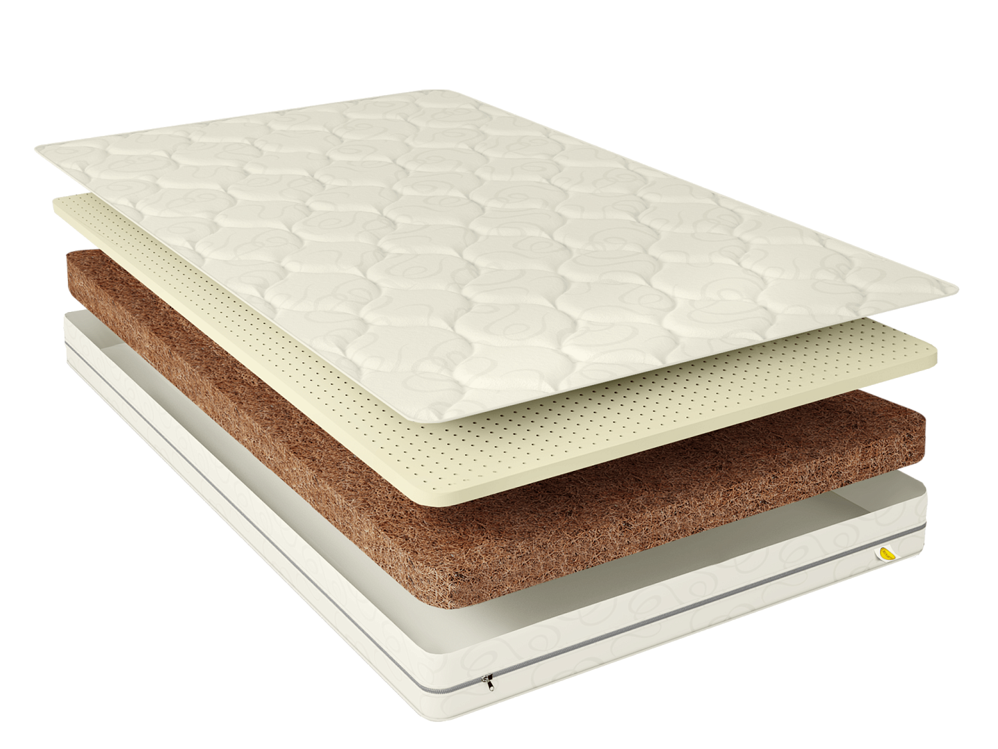 Матрас Baby Natural с разными сторонами жесткости. Одна сторона жесткая, другая умеренно жесткая. Общая высота матраса 8 см. Матрас является беспружинным. С одной стороны добавлен слой латексированной кокосовой койры толщиной 6 см, придающий дополнительную жесткость и долговечность матрасу. С другой стороны добавлен слой натурального латекса высотой 2см, усиливающий анатомические свойства, комфорт и срок службы матраса. Съемный чехол матраса, выполнен из хлопкового жаккарда, простеганного на экологически чистом материале Hollcon.
