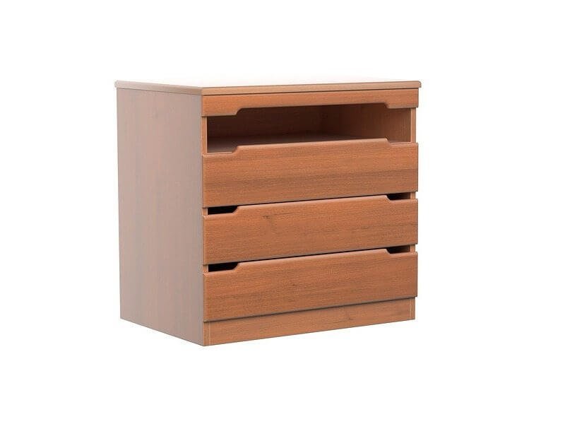 На выбор предлагаются актуальные цвета древесины, в том числе оттенки орех и груша. Купить изделия возможно в стандартной и индивидуальной комплектации. Под заказ изготавливаются комоды с другими параметрами по высоте, с дополнительным ящичком и автодоводчиками закрытия, что несущественно сказывается на цене.