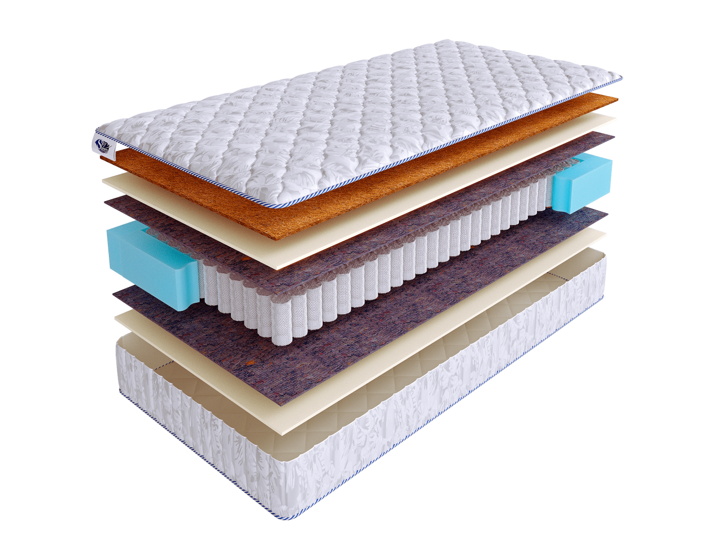 Чехол матраса выполнен из хлопкового жаккарда, простеганного на 100 г. синтепона.