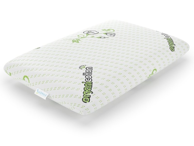 Оптимальная высота 12 см обеспечивает идеальное положение шейных позвонков во время сна. Дополнительный комфорт создается за счет воздухопроницаемых свойств наполнителя. Человеку комфортно в любое время года, так как сохраняется естественный температурно-тепловой режим. Чехол выполнен из приятного на ощупь полиэстер, органический хлопок.